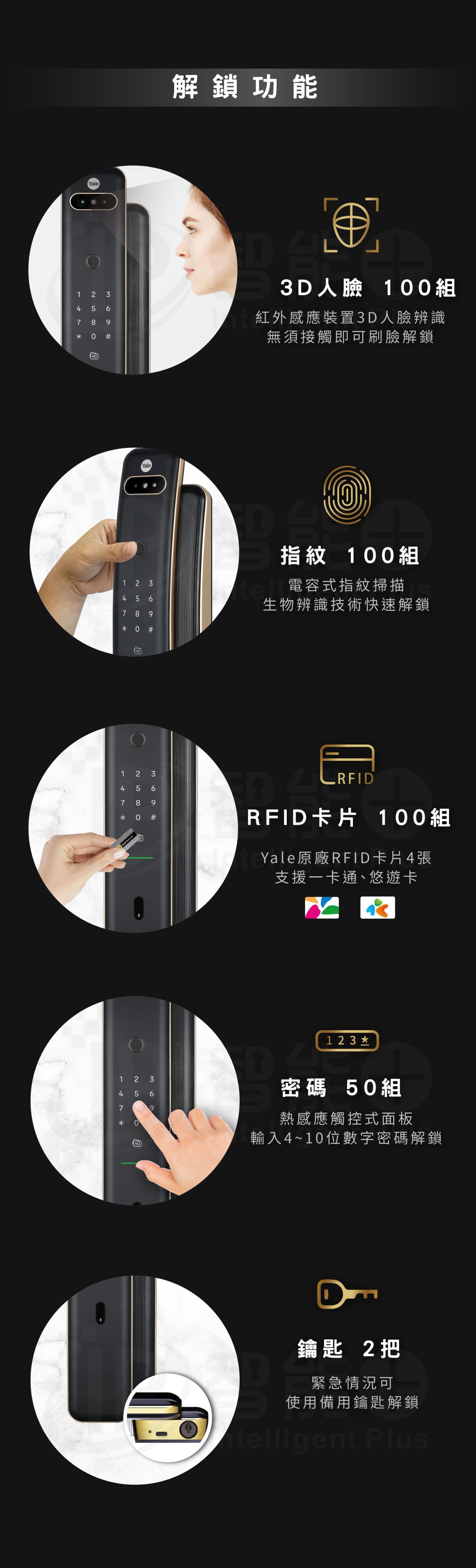 人臉/指紋/卡片/密碼/鎖匙/藍芽(選配)/遠端(選配)